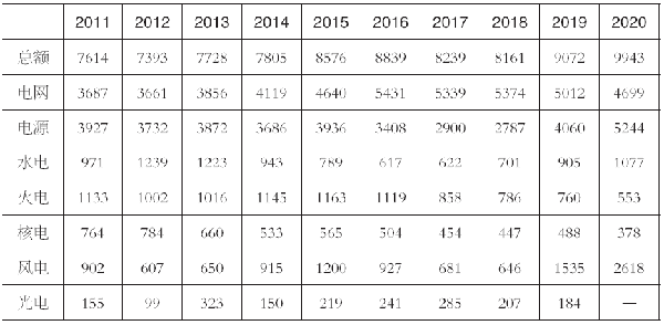 表7 2011~2020年全国电力投资情况(单位:亿元)