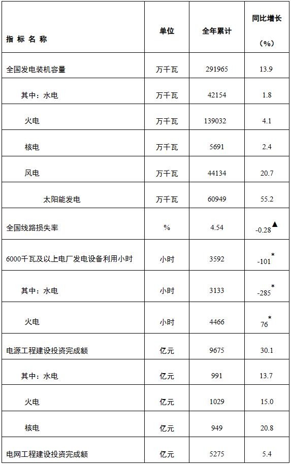 1.全国发电装机容量及其中的分项指截至统计月的累计装机容量。